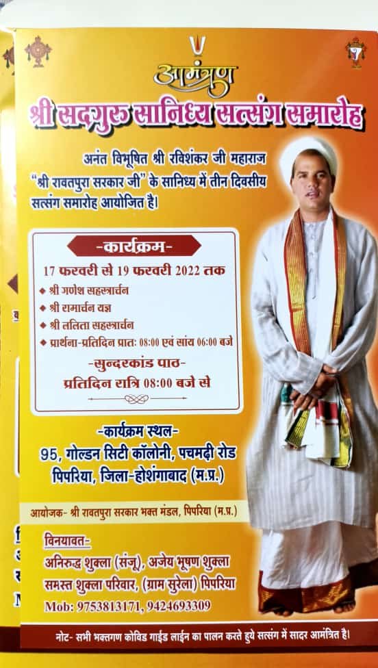 संत रावतपुरा सरकार 17 फरवरी को पिपरिया में..सत गुरु सानिध्य कार्यक्रम…